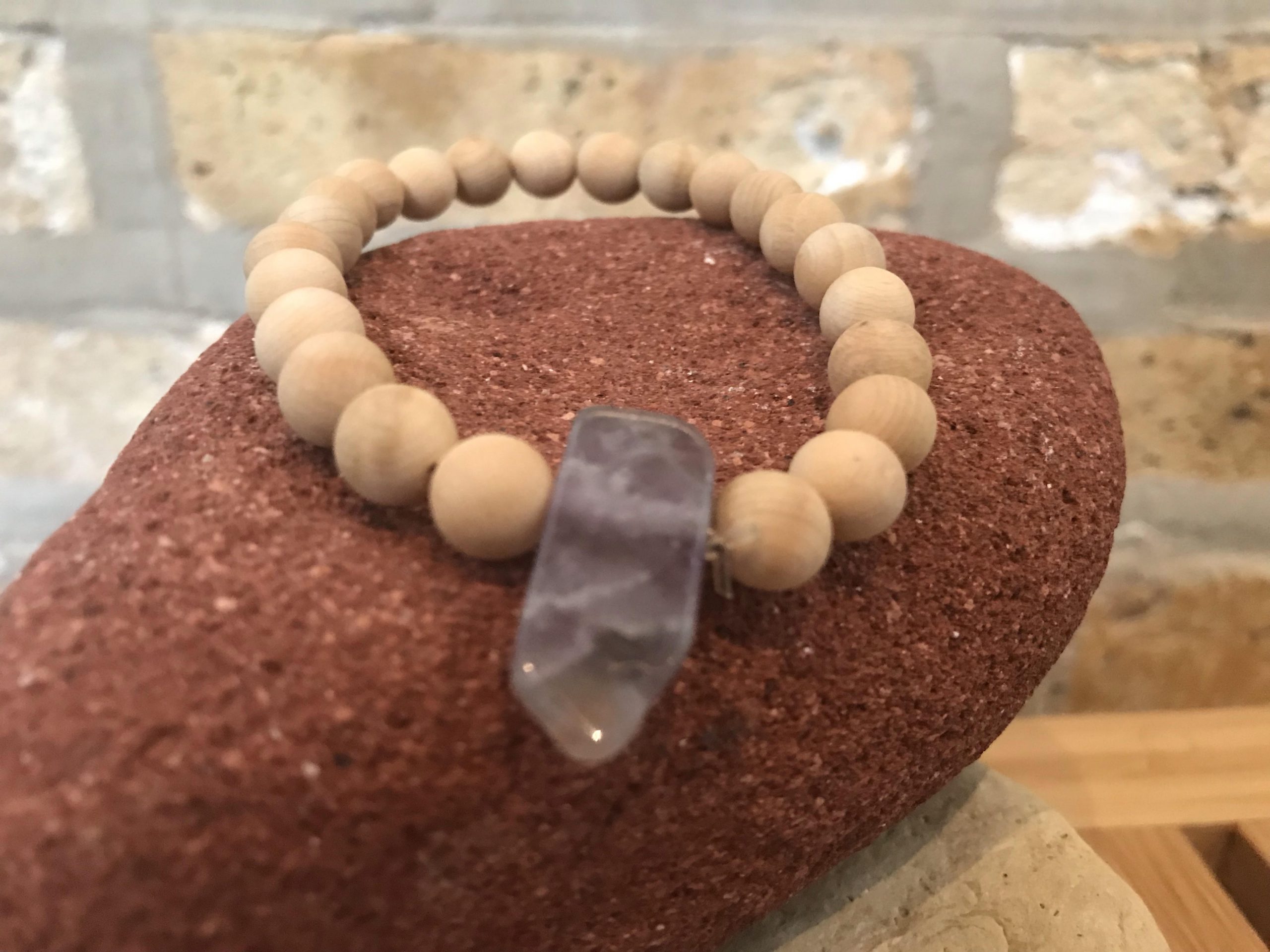 Sacred Mala Bracelet handmade by Billie Topa Tate and blessed with Healing Energy. Malas are worn for meditation or yoga to deepen your practice and as a reminder to keep your attention focused during your practice. Malas can also be used to inspire you as you set your intentions. Each stone has subtle properties which effect the subconscious of the mind.