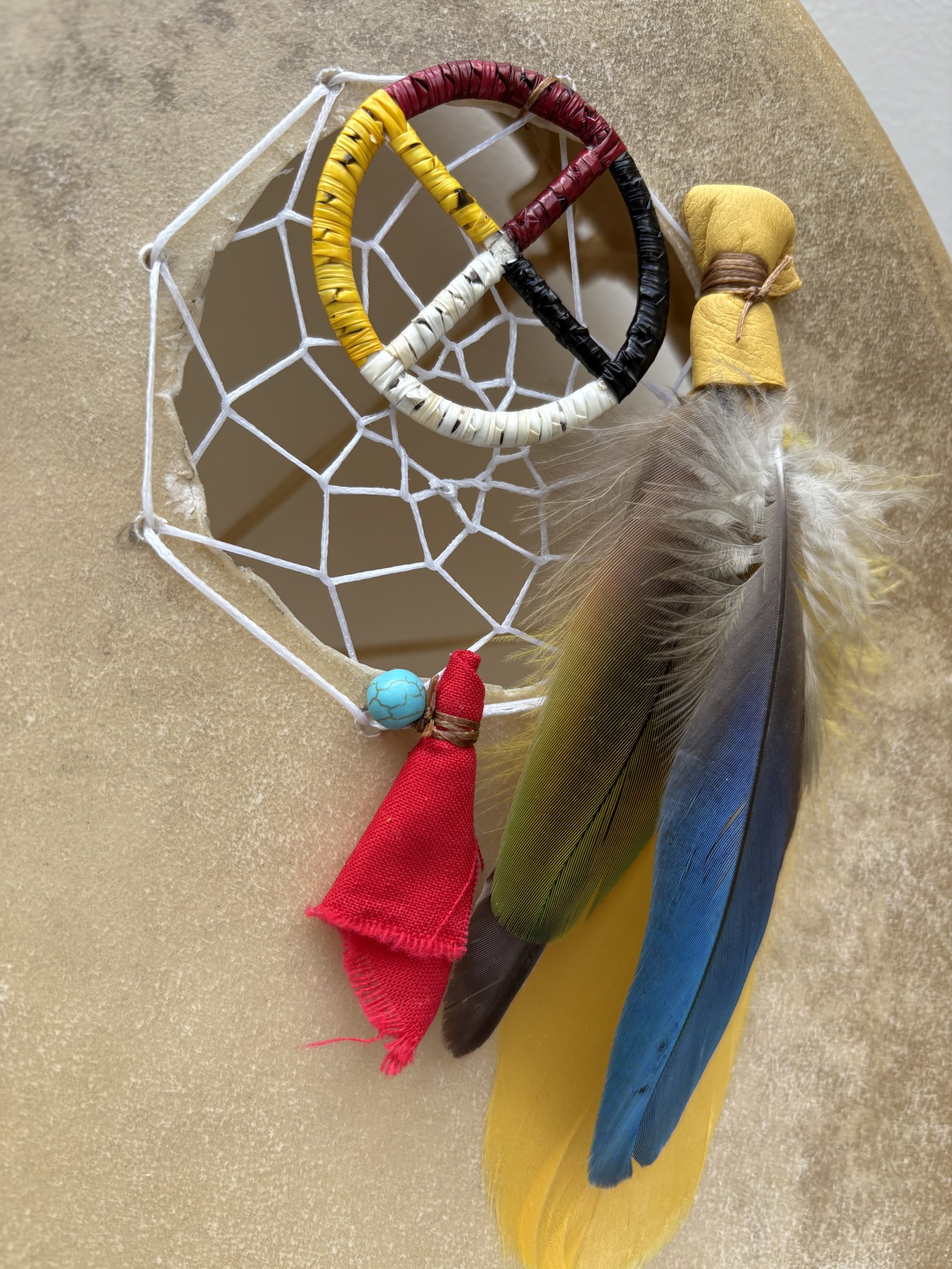 Handmade Dream Catcher Ceremonial Drum by Billie Topa Tate – Mescalero Apache Lineage